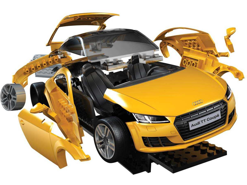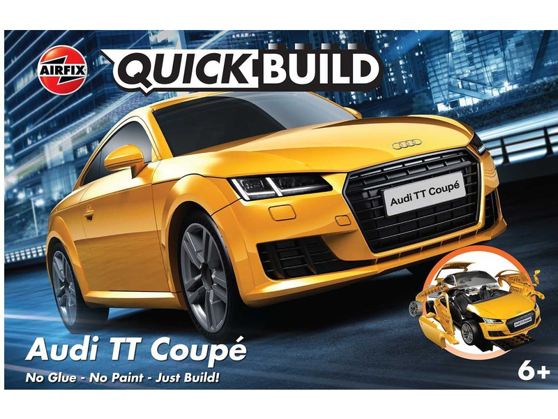 Plastikový model Airfix Quick Build J6034 – auto Audi TT Coupe. Stavebnice obsahuje 44 dílků, délka 180 mm, obtížnost 1.