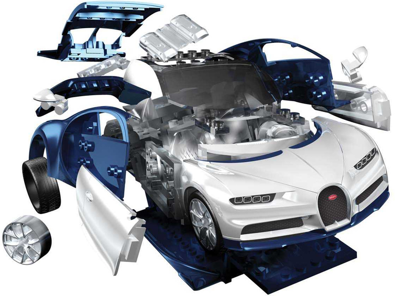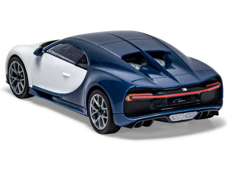 Plastikový model Airfix Quick Build J6044 – auto Build Bugatti Chiron. Stavebnice obsahuje 44 dílků, délka 189 mm, obtížnost 1.
