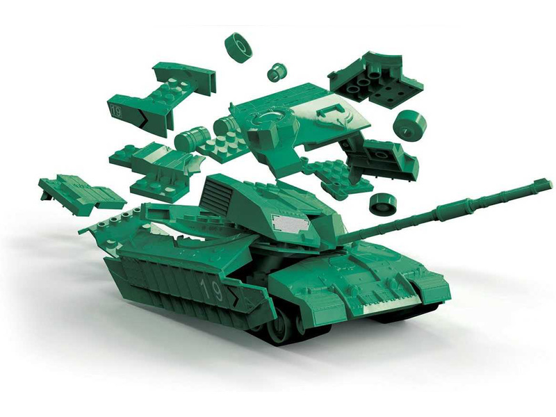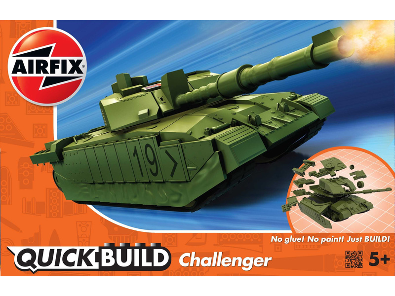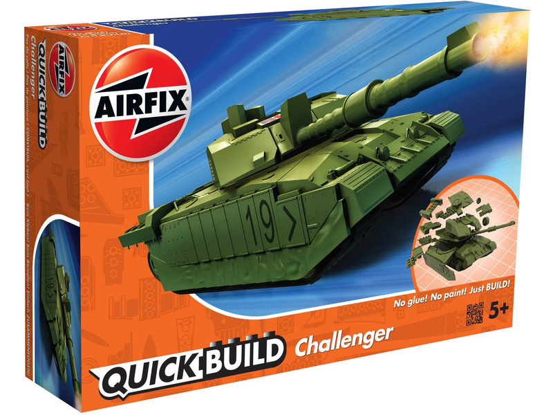 Plastikový model Airfix Quick Build J6022 – tank Challenger. Stavebnice obsahuje 35 dílků, délka 217 mm, obtížnost 1.