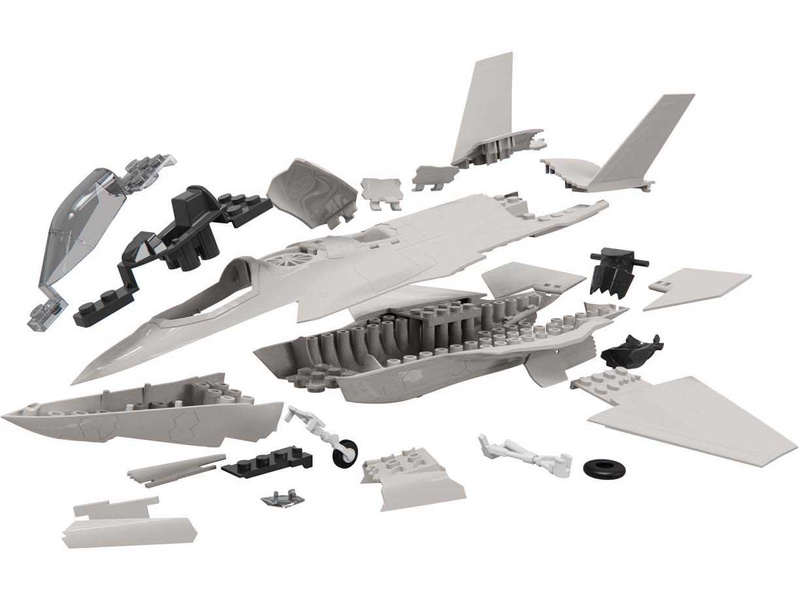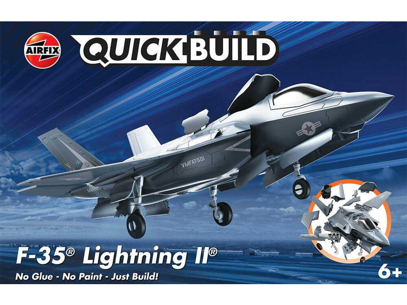 Plastikový model Airfix Quick Build J6040 – letadlo Lockheed F-35B Lightning II. Stavebnice obsahuje 38 dílků, délka 213 mm, rozpětí křídel 260 mm, obtížnost 1.