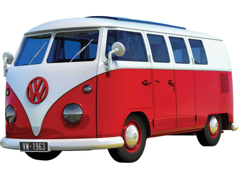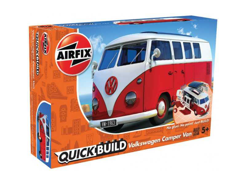 Plastikový model Airfix Quick Build J6017 – auto VW Camper Van. Stavebnice obsahuje 42 dílků, délka 195 mm, obtížnost 1.