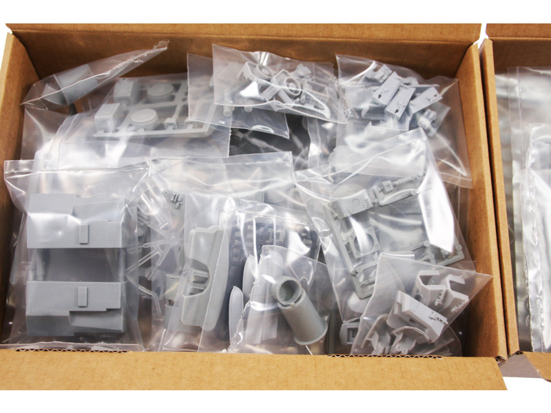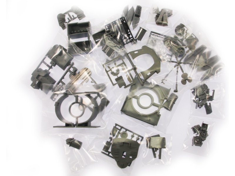 Po otevření víka krabice naleznete dřevěné díly modelu z překližky, sadu lišt, mosazné a kovové součásti, plastové výlisky v sáčcích, sadu výkresů, velmi obsáhlý obrazový barevný návod a manuál.