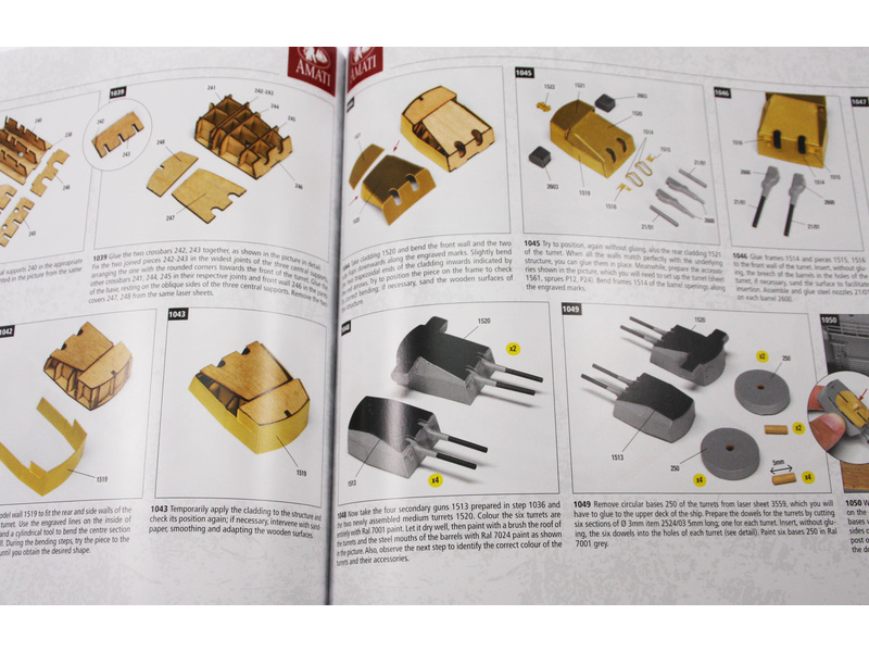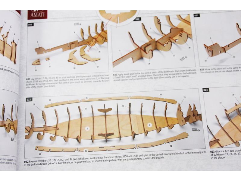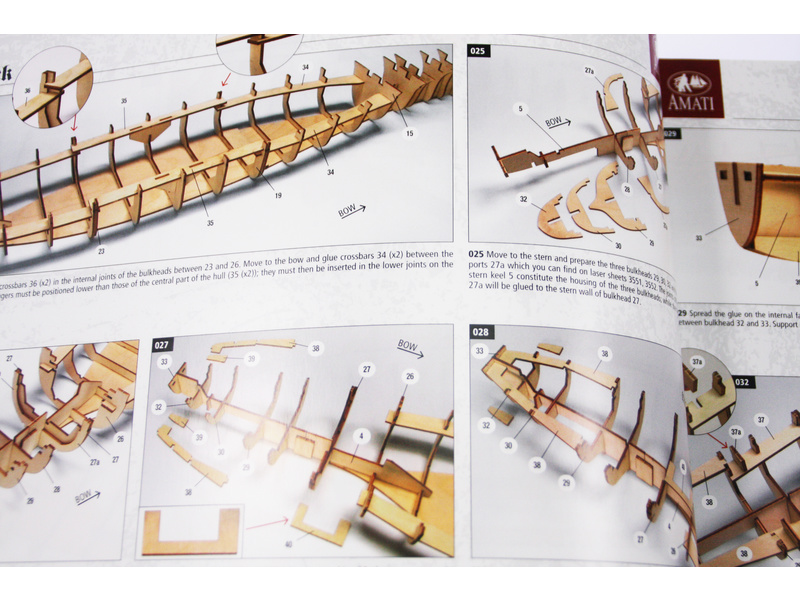 Všechny modely lodí mají vyčerpávající montážní plány a pokyny krok za krokem pro začátečníky i zkušené modeláře, pro dlouhé hodiny zábavného modelářství. Společnost Amati má vždy pečlivě na očích tržní požadavky, kde se potvrzuje trvale vysoká kvalita modelů, příslušenství a modelů miniatur, je přesnost naprosto nezbytná.