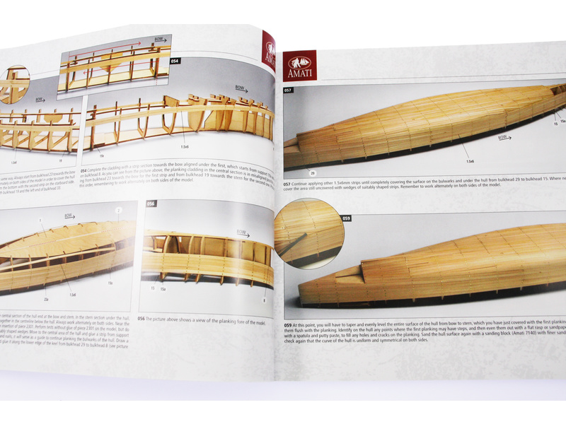 Součástí stavebnice je velmi obsáhlá dokumentrace s plány a barevnými fotografiemi stavby v manuálu. Krok za krokem můžete postupovat až k úplnému dokončení modelu. Stavebnice je vhodná pro zkušené lodní modeláře, kteří mají předchozí zkušenosti ze stavby modelů lodí a neodradí je ani vysoká časová náročnost,