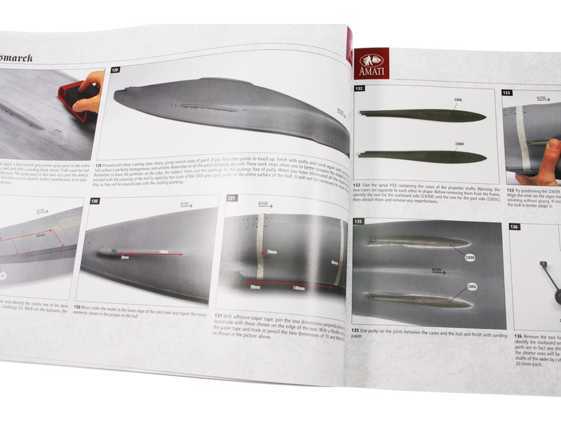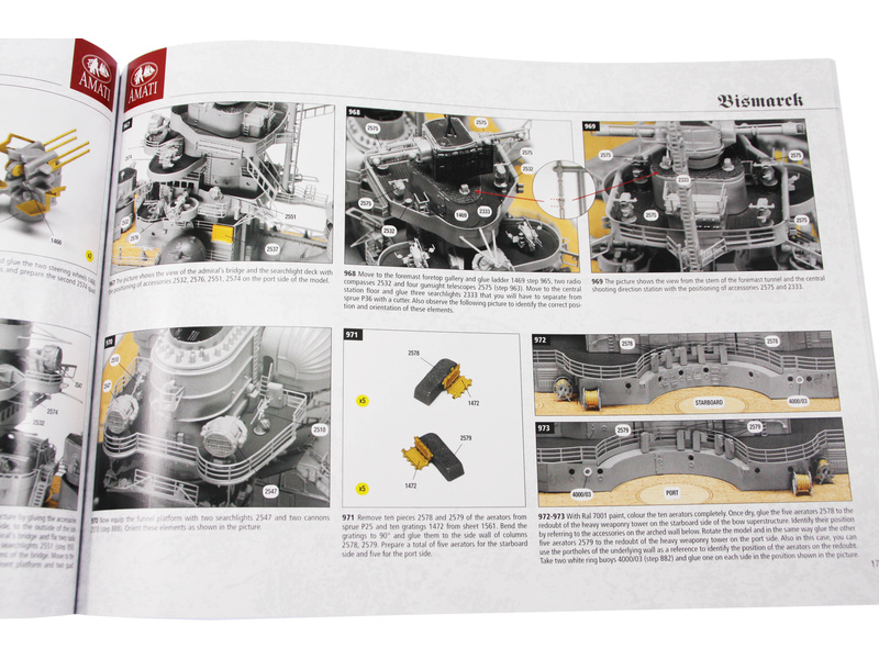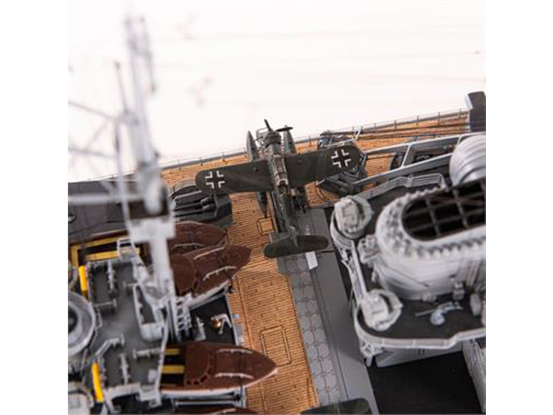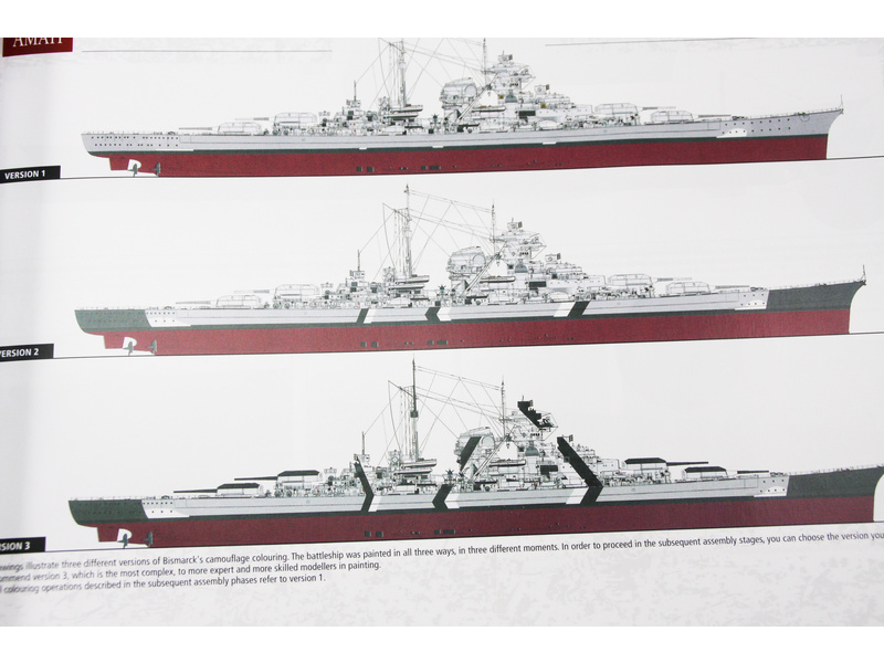 Bismarck je pravděpodobně nejznámější bitevní loď německého námořnictva. V době svého uvedení do provozu v roce 1940 byla považována za největší a nejmocnější válečnou loď na světě. Spolu se svou sesterskou lodí Tirpitz vytvořila tzv. Třídu Bismarck. Jejím kapitánem byl Ernst Lindemann. V květnu 1941 se vydal na svoji první a poslední plavbu do Atlantiku, byl vážně poškozen torpédovými bombardéry Swordfish z letadlové lodě HMS Ark Royal a potom potopen 27. května bitevními loděmi HMS Rodney, HMS King George V a dalšími plavidly. Amati má mnohaleté zkušenosti s modelem Bismarck, v této verzi se podařilo výrazně vylepšit konstrukci s ještě podrobnějšími detaily. Díky odnímacím palubám a prostornému trupu lze model připravit i na vodu jako funkční RC model.