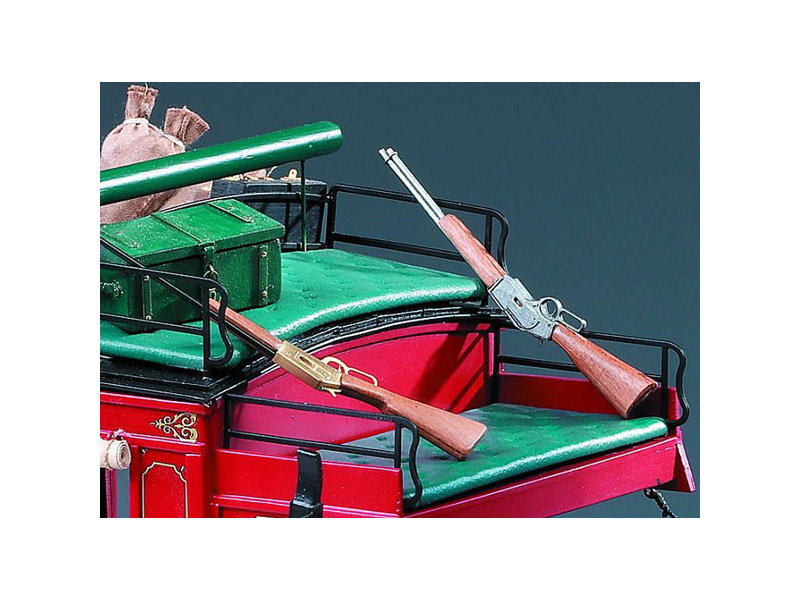 Stavebnice od AMATI obsahuje součásti pro stavbu modelu poštovního dostavníku Wells Fargo v měřítku 1:10 z období divokého západu (1820-1900). Celková délka modelu je 700 mm, kabina, kola i podvozek jsou skutečnými miniaturami původního vozu, díky moderní laserové technologii je model přesnou kopií originálu. Kovové tvarovky jsou leptány z mosazného plechu, součástí sady je kompletní sada zavazadel a dvě makety pušek Winchester ze dřeva a mosazi. Nechybí ani kožený materiál a přezky na kožené řemínky zavazadel. Velmi podrobné stavební plány a pokyny jsou k součástí stavebnice.