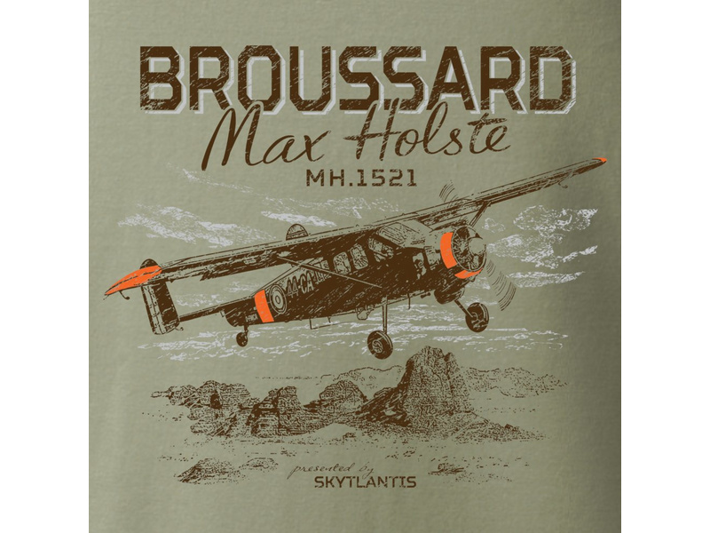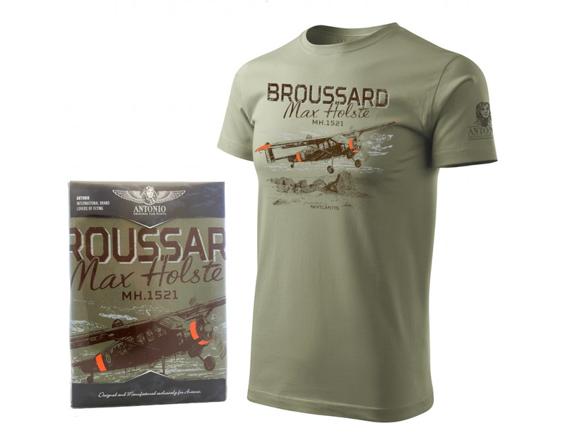 Pánské tričko s potiskem Antonio MH.1521 BROUSSARD. Grafika letounu francouzské armády. Krátký rukáv, 100% bavlna se silikonovou úpravou je zárukou příjemného pocitu při nošení. Látka 200 g/m², pleteno single jersey, zelená barva, luxusní dárkové balení.