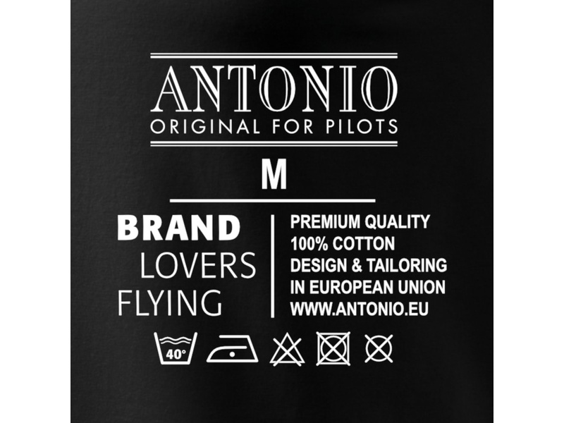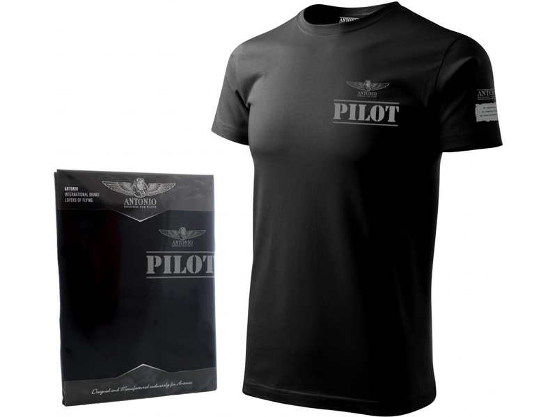 Pánské tričko Antonio Pilot BL s krátkým rukávem. Motiv s označením pilota. 100% bavlna se silikonovou úpravou je zárukou příjemného pocitu při nošení. Látka 200 g/m², pleteno single jersey, černá barva, luxusní dárkové balení.