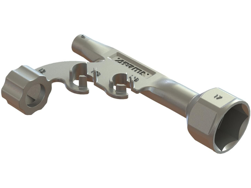 Arrma klíč univerzální kovový 5/7mm, 11/15mm, pro auta Arrma na matice a pouzdra těsnění tlumičů, k montáži matic 5mm, 7mm a 12mm. Klíč 12mm lze použít k nastavení třecí spojky na 4WD. Doporučeno pro auta BIGROCK, GRANITE, SENTON, TYPHON, VORTEKS.