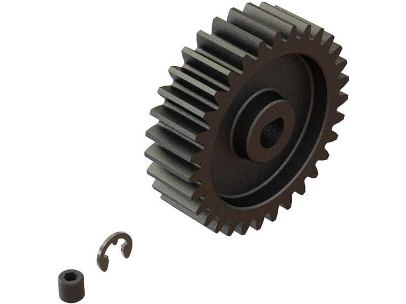 Arrma ocelový pastorek 31 zubů, modul M1, otvor Safe-D5. Otvor ve tvaru 'D' odpovídá profilu hřídele motoru s hřídelí 5mm a drážkou, proto se nemůže pastorek na hřídeli protočit. Stavěcí šroub - M4 x 4mm, segrovka 3,2mm. Precizně vyrobený široký profil zubu pro hladký chod.