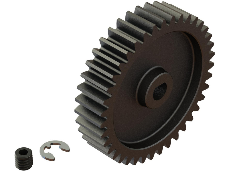 Arrma ocelový pastorek 39 zubů, modul M1, otvor Safe-D5. Otvor ve tvaru 'D' odpovídá profilu hřídele motoru s hřídelí 5mm a drážkou, proto se nemůže pastorek na hřídeli protočit. Stavěcí šroub - M4 x 4mm, segrovka 3,2mm. Precizně vyrobený široký profil zubu pro hladký chod.