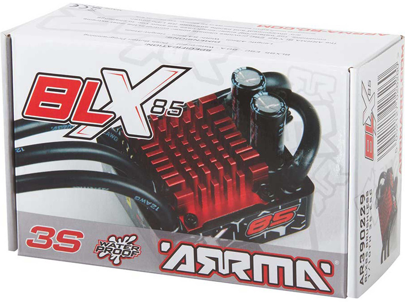 Střídavý regulátor Arrma BLX85, s podporou 3S LiPo akumulátorů, 3 jízdní režimy, nastavení jedním tlačítkem, dvoustupňová ochrana proti podvybití akumulátoru. Přepěťová ochrana.