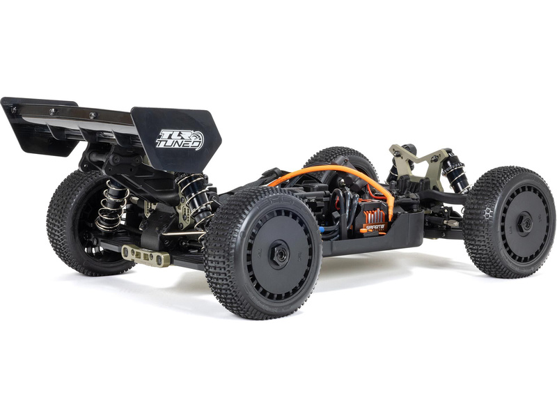 Závodní RC model auta Buggy ARRMA TLR Tuned TYPHON 4WD v měřítku 1:8 je vybaven špičkovými díly pro lepší pevnost, ovladatelnost a dlouhou životnost při soutěžním závoděním. Nainstalovány jsou výkonné komponenty pohonu Spektrum Firma a RC souprava Spektrum 2.4GHz SLT3.