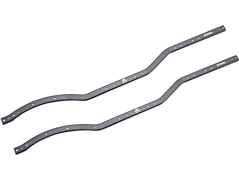 Náhradní díl pro RC modely aut Axial na podvozku SCX10: Axial podélníky šasi (2 ks). Černý elox, leptané logo Axial.