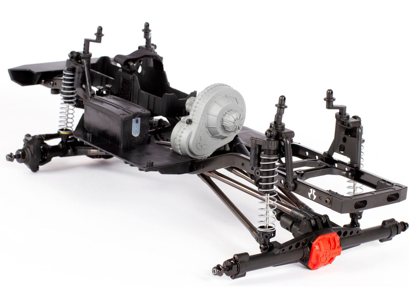 Podvozek SCX10 II je vybaven pevnými nápravami, které mají pro vyšší pevnost jednodílné výlisky skříní náprav. Trvale uzavřené diferenciály přenesou maximální výkon na všechna kola a díky tomu projedete i tím nejtěžším terénem s velkým stoupáním, přes balvany a kameny. Díky hypoidnímu převodu s kuželovým ozubením bylo možné zmenšit rozměry převodovky a zvětšit tak světlou výšku.
