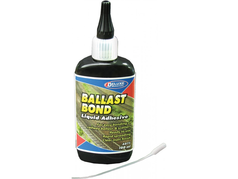 Ballast Bond 100ml je speciální řídké lepidlo, které po zaschnutí vytvoří matný povrch. Ideální pro dioramata nebo modelovou železnici. Hodí se především na lepení sypkého materiálu (písek, zemina, šterk, uhlí) do tendrů lokomotiv, nákladu do vagonů a nákladních automobilů, pro tvorby krajiny nebo pro fixaci štěrku mezi pražci v modelové železnici.