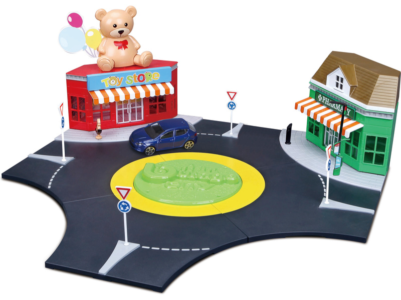 Ke každému výjezdu z kruhového objezdu si můžete umístit jakoukoli budovu se série Bburago City. Díky jednotlivým stavebním dílům si vytvoříte město s cestou jako ve skutečnosti.