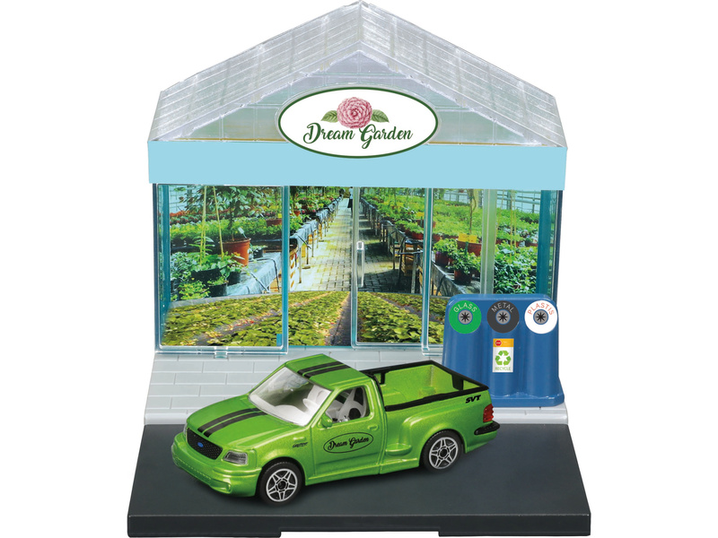 Herní set Bburago 18-31511 City - zahradní domek s autíčkem Ford SVT F150 Lightning v měřítku 1:43 ( přibližně 10 cm velké ) pro malé milovníky aut. Set umožní malým řidičům doplnit nebo vytvořit si vlastní městečko. Balení obsahuje plastovou maketu zahradního domku, autíčko.