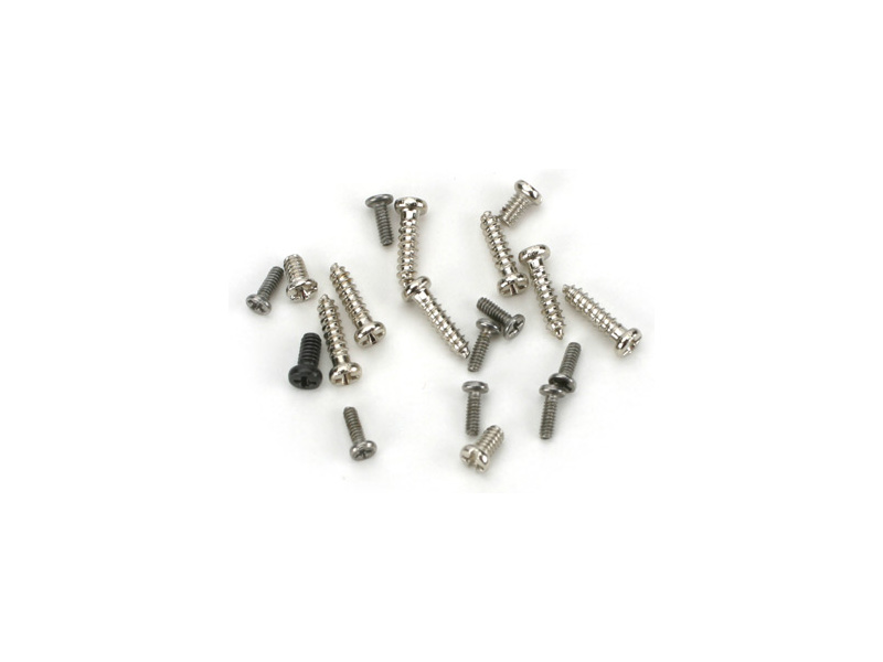 Sada šroubů značky E-flite. Balení obsahuje šroubky různých délek, průměru, zápustná a válcová hlava.