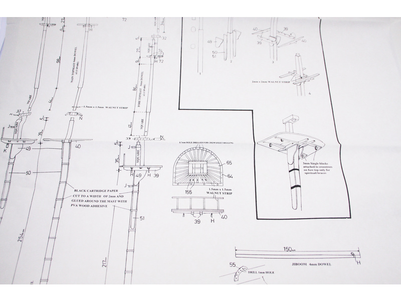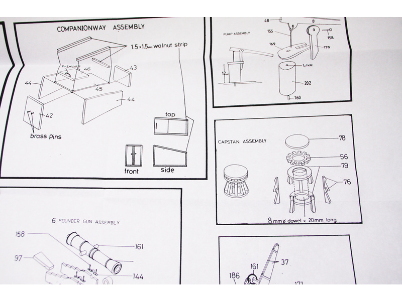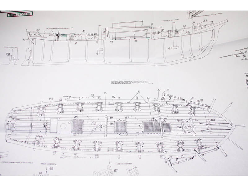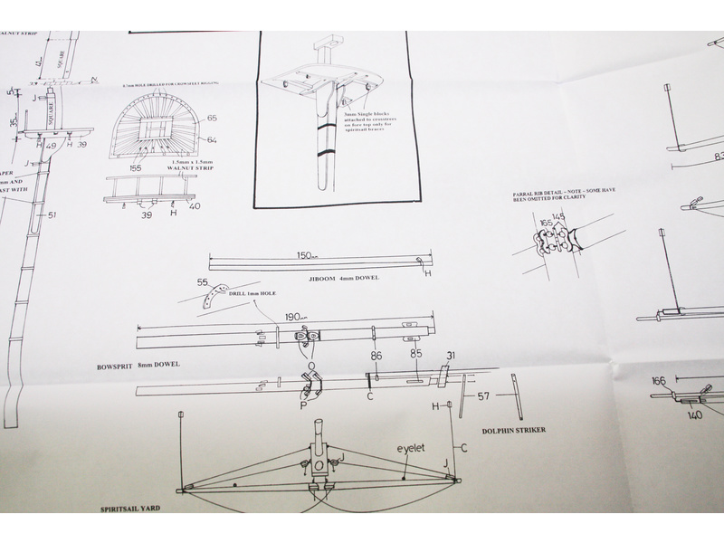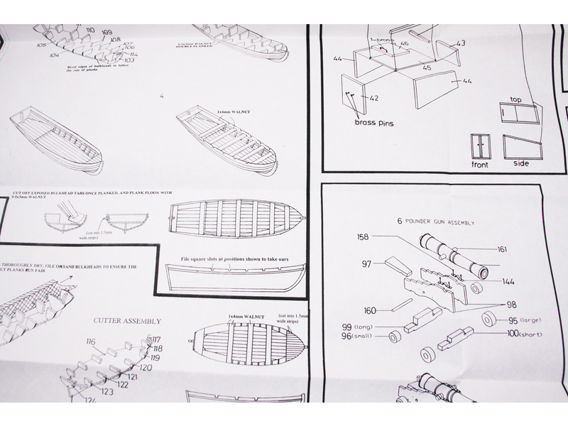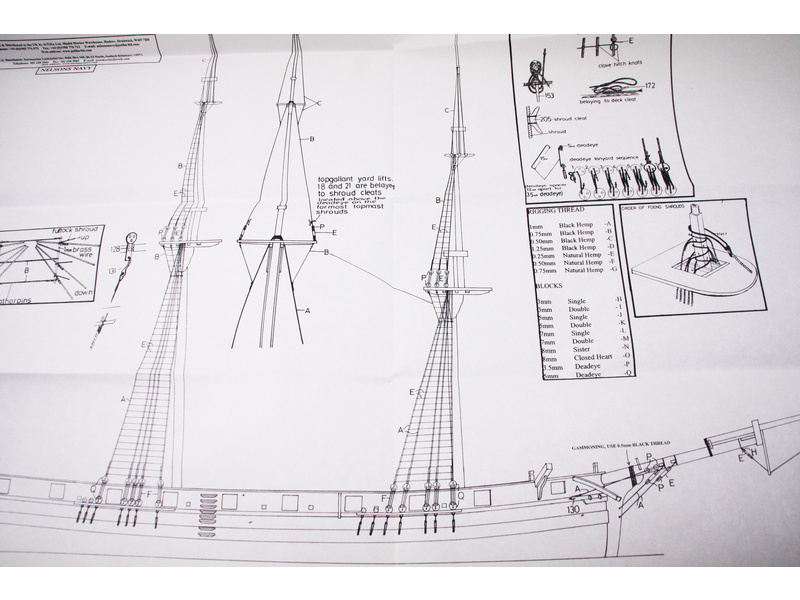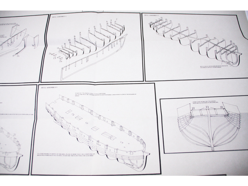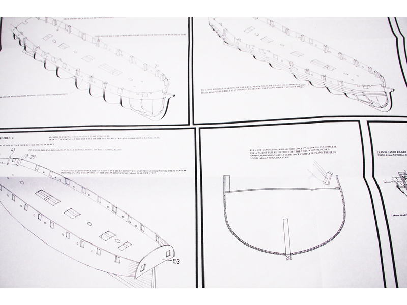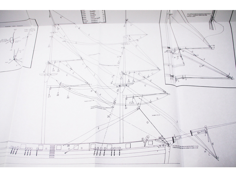 Set obsahuje kompletní sadu výkresové dokumentace modelu v měřítku 1:1 s obrázky jednotlivých detailů. Na výkrese jsou v měřítku nakresleny montážní sestavy, jejich kompletace a to včetně stěžňů a ráhen a způsob vázání lanoví. Vícejazyčný postup stavby rámcově upravuje logické sestavení jednotlivých komponentů.