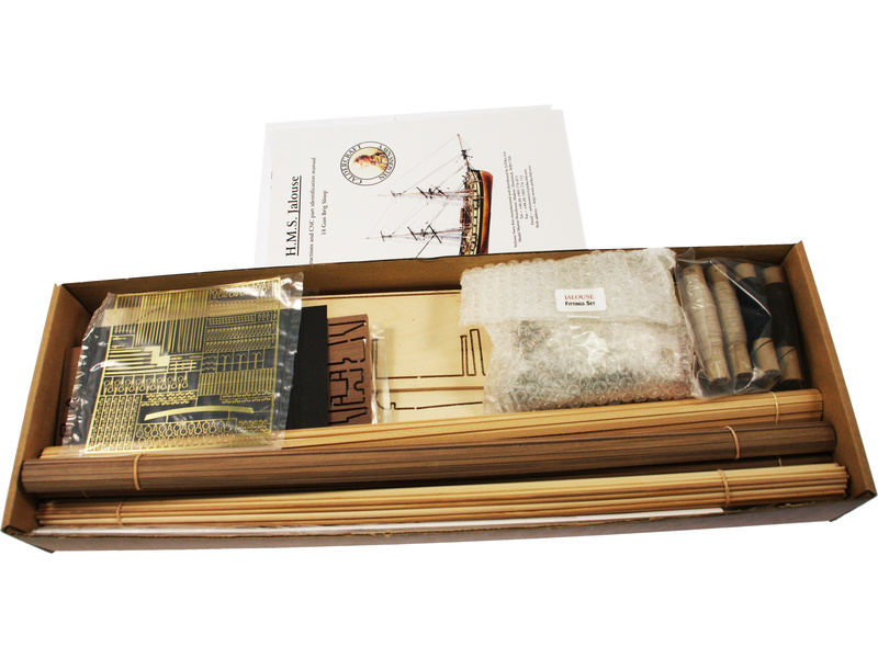 Stavebnice lodi Jalouse je určena pro středně zkušeného modeláře. Doba výstavby je se odhaduje přibližně 5 měsíců s pravidelnou večerní prací. Set obsahuje 18 mosazných kanonů (6 palcových), CNC frézované dřevěné díly z ořechu a překližky, černou a přírodní přízi pro lanoví, veškeré příslušenství z jemného litého kovu, leptanou mosaz nebo díly ze dřeva, kompletní měděné části pro trup pod čarou ponoru, stavební plány 1: 1 a podrobný stavební návod.