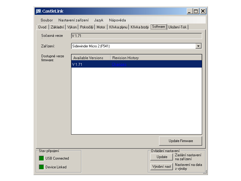 - Podpora protokolu Castle Live Link. Regulátor nyní může poskytovat hlavní telemetrické údaje, jako jsou otáčky motoru, napájecí napětí, teplotu bez nutnosti instalace externích čidel!