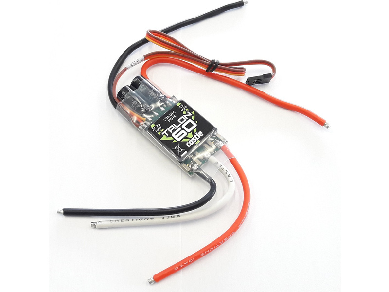 Talon 60 je vhodný pro Rc modely vrtulníků velikosti 360-450 .Obsahuje výkonný spínaný zdroj BEC, který dokáže bezpečně dodat stabilní napájení pro rychlá serva cykliky či vyrovnávacího rotoru. Proud do motoru 60 A trvale, BEC 6 nebo 8 V, 8 A trvale, 20 A špičkově po dobu 0.5 s, napájení 2 - 6 čl. LiPo.