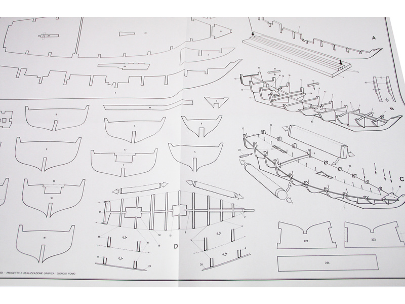 Set obsahuje kompletní sadu výkresové dokumentace modelu v měřítku 1:1 s postupem stavby, na výkrese jsou pečlivě označeny díly a je zde i seznam jednotlivých součástí modelu.