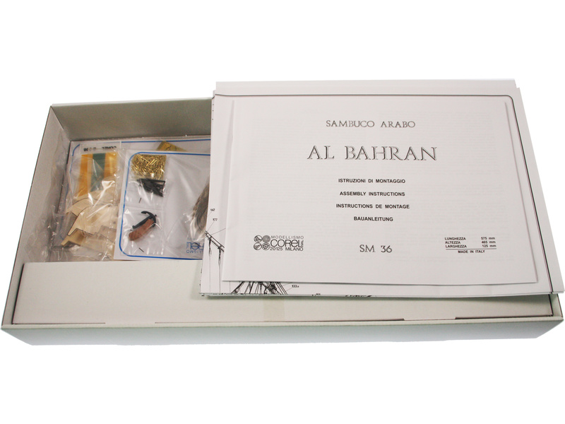 Neplovoucí model COREL Al Bahran 1:50 kit je stavebnice dřevěné makety lodi. Loď byla používána kolem Arabského poloostrova jak pro rybolov, tak pro přepravu zboží na volném moři. Stavebnice obsahuje potřebný materiál pro stavbu, kování, drobné příslušenství a stavební plány.