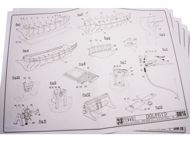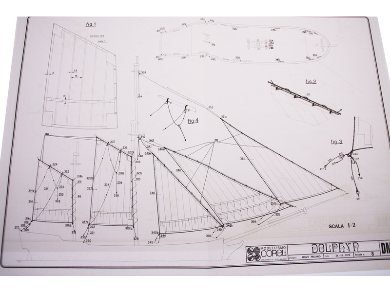 Stavebnice neplovoucího modelu COREL Dolphyn v měřítku 1:50 z roku 1750. Anglický ketch z roku 1750, který byl vyzbrojen 10 kanony a 6 puškami na stojanech. V balení jsou dřevěné díly, lišty a množství kování, lanoví, plátno na plachty, plány atd.