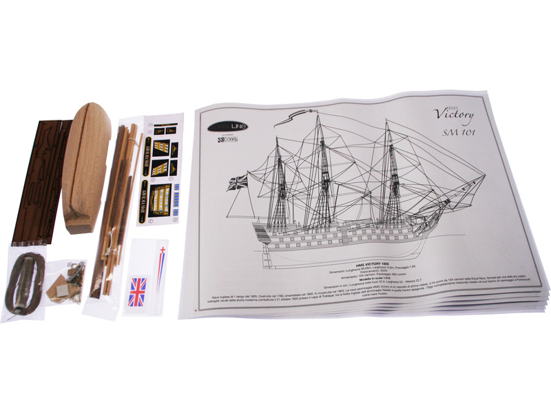 Stavebnice neplovoucího modelu COREL H.M.S. Victory v měřítku 1:310 z roku 1805. Stavebnice slavné HMS Victory, vlajkové lodě Admirála Nelsona v bitvě u Trafalgaru v roce 1805. V balení jsou dřevěné díly, lišty a množství kování, příslušenství, velké stavební plány v měřítku 1: 1 a mnoho perspektivních výkresů usnadňují montáž. Určeno pro zkušené modeláře.