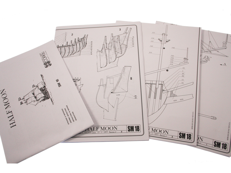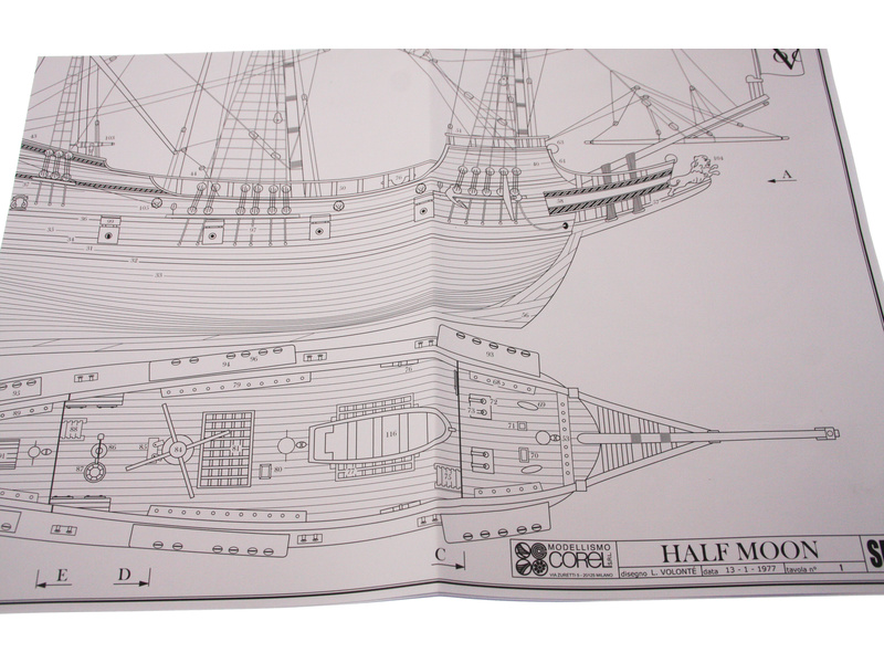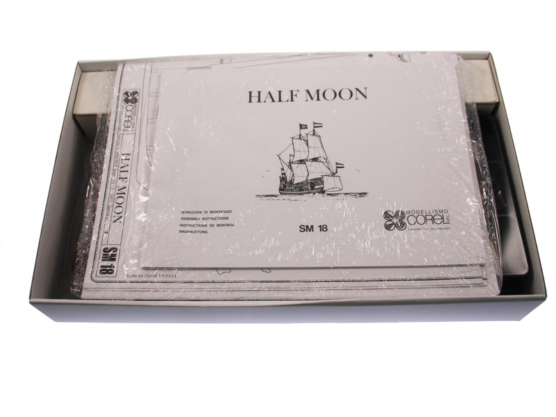 Stavebnice neplovoucího modelu COREL Half Moon v měřítku 1:50 z roku 1609. Tato loď proslavila holandského kapitána Hudsona z Halve Maen, který nalezl velkou zátoku na východním pobřeží Ameriky kde bylo založeno město později New York. V balení jsou dřevěné díly, lišty a množství kování, lanoví, plátno na plachty, plány atd.
