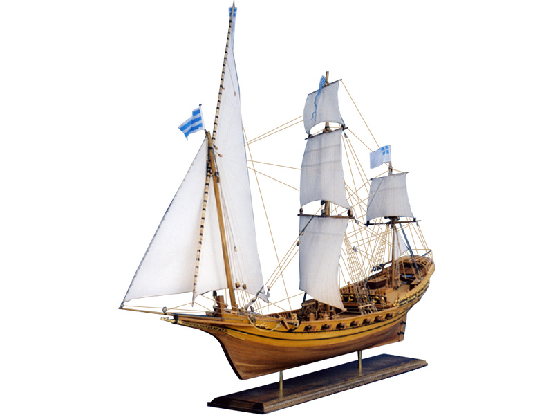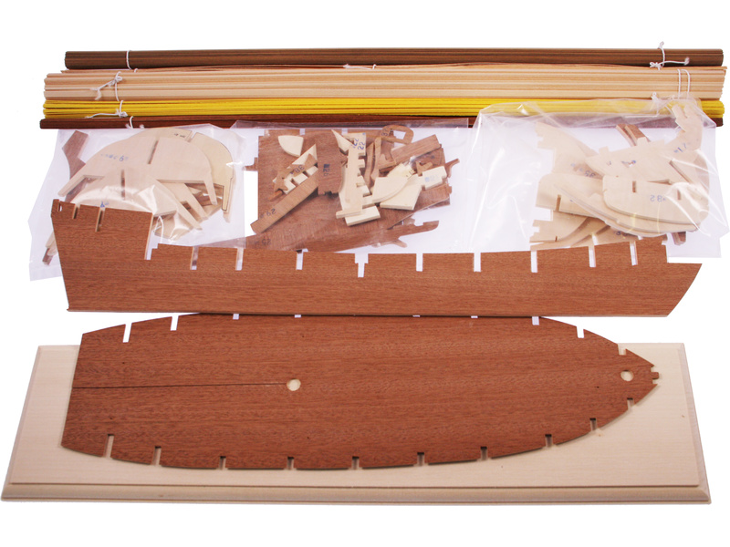 Balení obsahuje sadu překližkových dílů, sadu dřevěných lišt o různém průřezu, blistr s drobnými díly, díly z mosazi, sadu výkresů a vícejazyčný manuál.