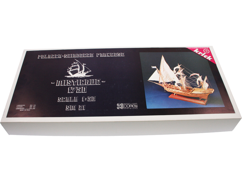 Stavebnice neplovoucího modelu COREL Mistique v měřítku 1:50 z 18. stol. Loď třídy Polacker do které patřil Mistique, byly charakteistické 3-stěžňovým uspořádáním. I když byl postaven jako obchodní loď, byl Misticque vyzbrojen 18 děly. V balení jsou dřevěné díly, lišty a množství kování, lanoví, plátno na plachty, plány atd.