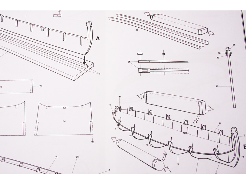 Set obsahuje kompletní sadu výkresové dokumentace modelu v měřítku 1:1 s obrázky jednotlivých detailů. Na výkrese jsou v měřítku nakresleny montážní sestavy, jejich kompletace a to včetně stěžňů a ráhen a způsob vázání lanoví. Vícejazyčný postup stavby rámcově upravuje logické sestavení jednotlivých komponentů.
