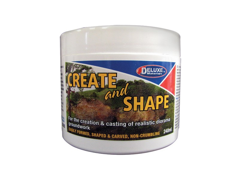 Create and Shape speciální zvýrazňovací měkká nepropustná pasta pro vytváření měřítkových efektů jako je bláto a travnatý terén. Je vhodná pro tvorbu krajiny v modelové železnici a dioramatech. S materíálem se velmi dobře pracuje, je velmi lehký a nepraská. Plno inspirací v přiloženém videu.