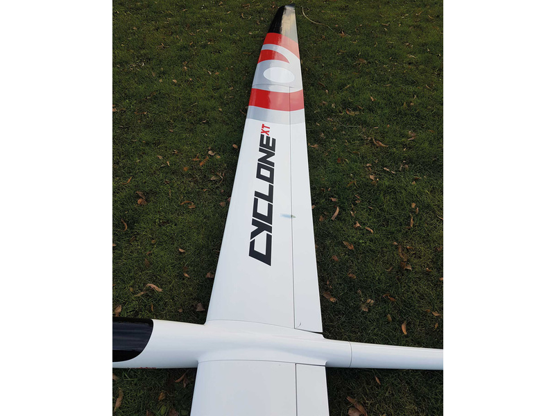 Obří RC model termického větroně na dálkové ovládání Cyclone XT ARF o rozpětí 6,2m, je vlajkovou lodí Robbe. Téměř hotový model s laminátovým trupem a 4-dílným křídlem s vestavěnými zámky MultiLock. Laminátový trup, křídlo potaženo dýhou Abachi, bez elektroniky.
