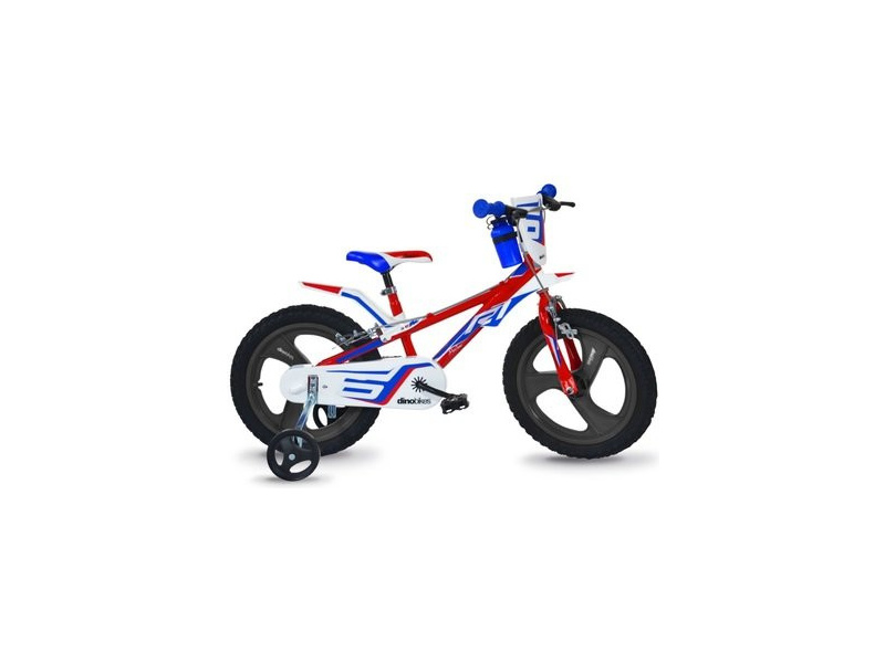 Dětské kolo DINO Bikes - 14" s motivem trikolóry pro malé závodníky. Kvalitní, vzduchem plněné pneumatiky s tvrzenými plastovými disky. Přední a zadní čelisťová brzda, blatníky, kryt řetězu, přídavná kolečka a nastavitelné sedátko. Doporučený věk a výška dítěte: 3-5 let, 95-127 cm.