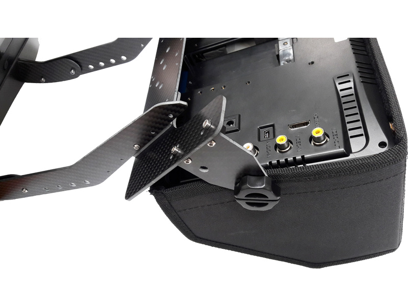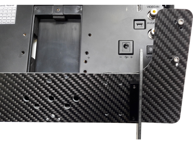 Držák monitoru 10" je doplňkovým příslušenstvím pro FPV konzolu, která umožní mít monitor uchycen na bočních držácích. Výhodou je možnost nastavení sklonu monitoru, ovšem monitor musí být vybaven bočními závitovými vložkami, do kterých se našroubuje šroub a tím se zafixuje sklon pomocí přitáhnutí