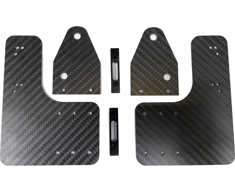 Obsahem balení je Držák monitoru 10" pro FPV konzolu v rozloženém stavu. Obsahuje spojovací materiál, 2ks adaper pro montáž bočních uchycení pro monitor, 2ks bočních držáků, 2ks rozšíření horní desky pro 10" palcový monitor