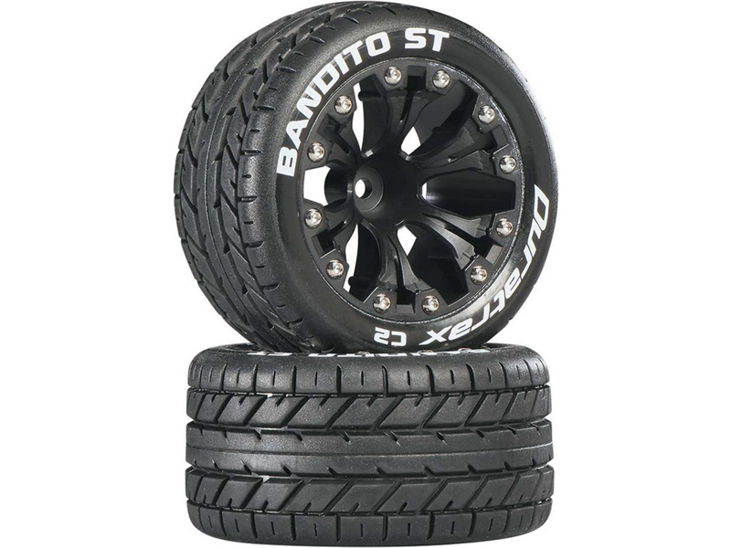 Kompletní kola Duratrax Bandito 2.8" ST pro RC modely aut. Disk má černou barvu, tvrdost směsi pneumatiky je C2 - měkká.