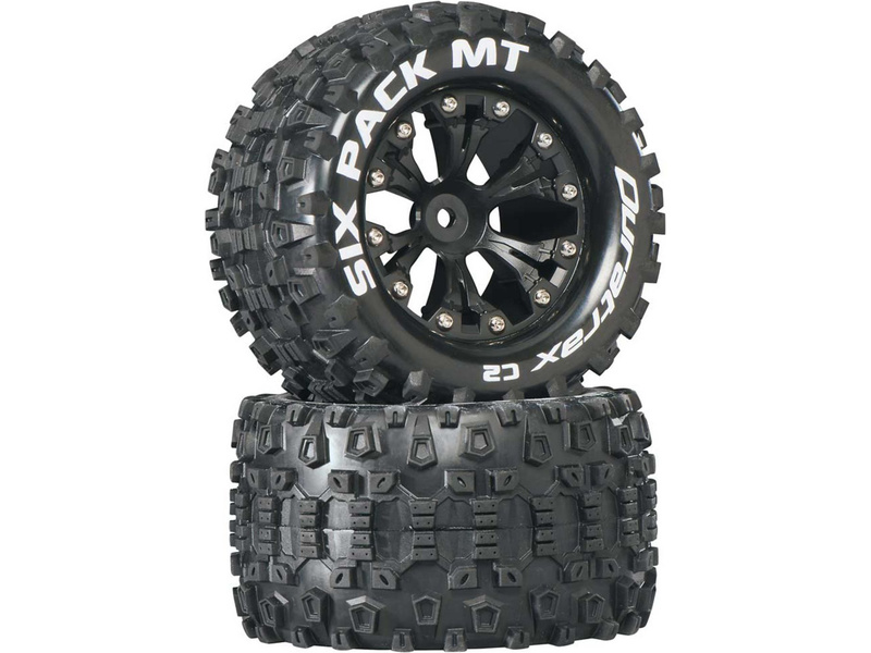 Kompletní kola Duratrax Six Pack 2.8" MT pro RC modely aut. Disk má černou barvu, tvrdost směsi pneumatiky je C2 - měkká.
