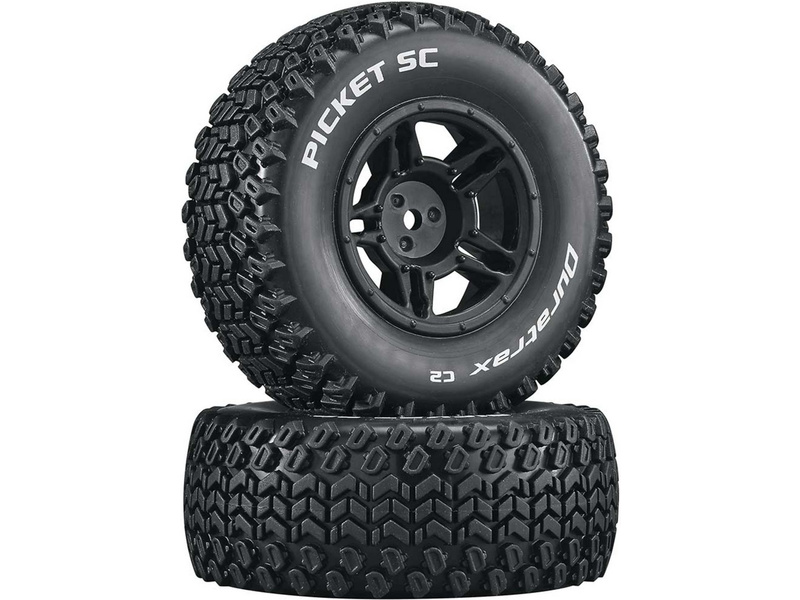 Kompletní kola Duratrax Picket SC pro RC modely aut. Disk má černou barvu, tvrdost směsi pneumatiky je C2 - měkká směs.