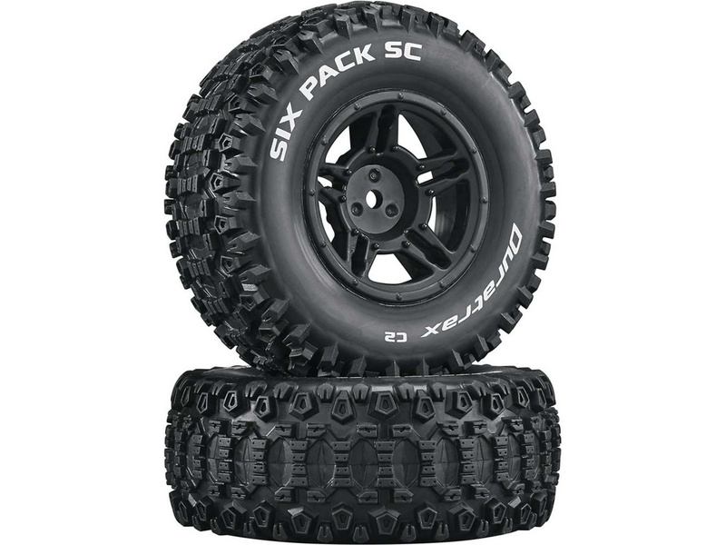 Kompletní kola Duratrax Six Pack SC pro RC modely aut. Disk má černou barvu, tvrdost směsi pneumatiky je C2 - měkká směs.