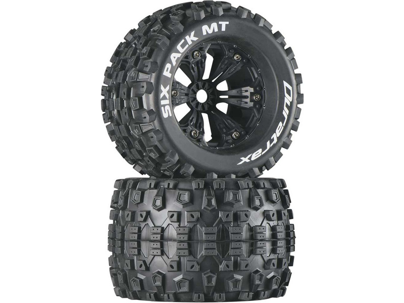 Kompletní kola Duratrax Six Pack 3.8" MT pro RC modely aut. Disk má černou barvu, tvrdost směsi pneumatiky je CS - sportovní směs střední.