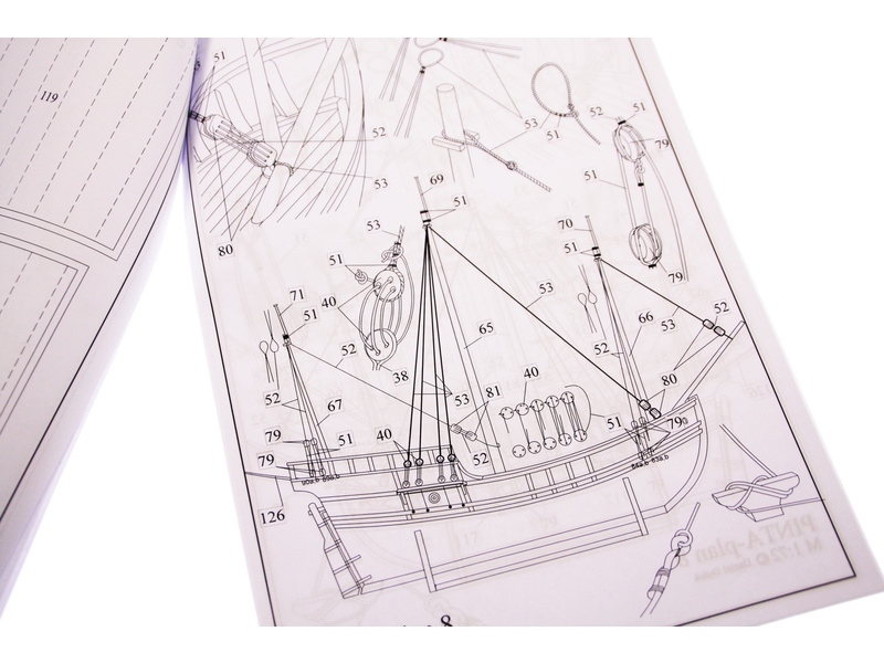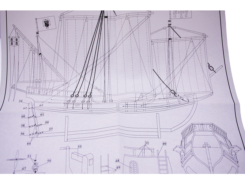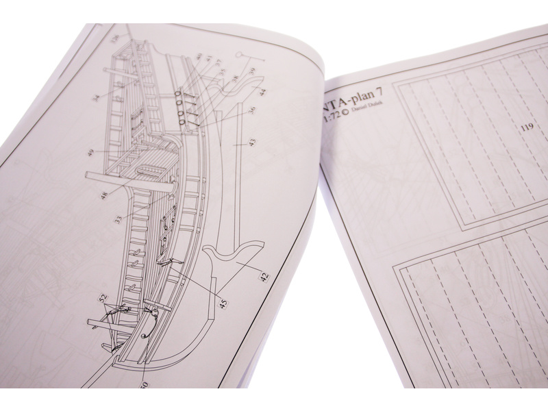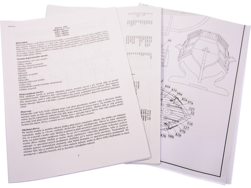 Stavebnice makety lodi Pinta z roku 1492 v měřítku 1:72 z flotily Kryštofa Kolumba. Délka modelu lodi je 385mm, stavba převážně ze dřeva s drobnými doplňky, součástí je stavební plán a pokyny s mnoha podrobnými obrázky.