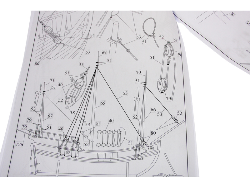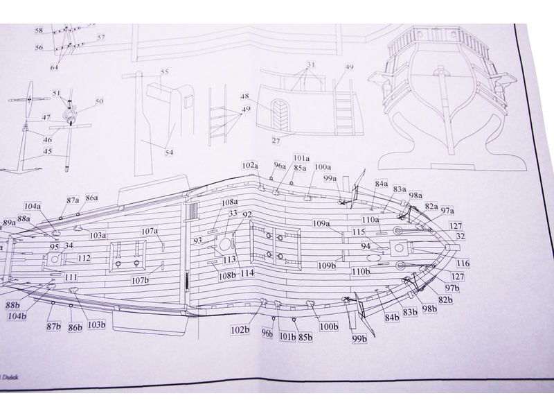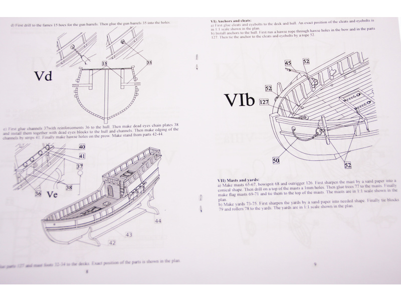 V balení stavebnice makety je sestava laserem vyřezaných desek z překližky a kompletní dřevěné součásti, mosazné součásti, prkna a lišty pro palubu, předtištěné vlajky, látku pro plachtu a dostatek lanoví na celou loď. Sestavení pomáhá podrobný plán stavby a přesné pokyny, manuál český a EN.