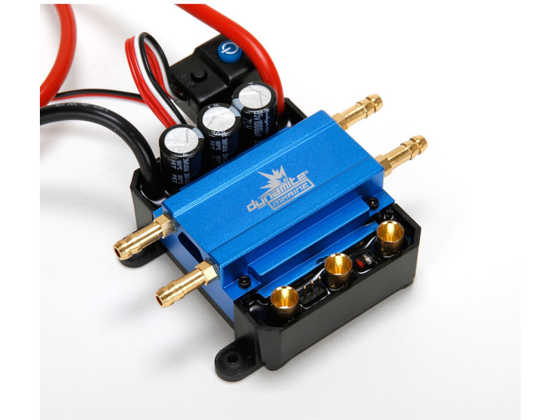 Dynamite střídavý regulátor pro velké modely lodí s trvalým proudem max. 160 A s vodním chlazením pro 3-8 článků LiPo. Parametry regulátoru lze nastavit pomocí programovací karty DYNS3005.