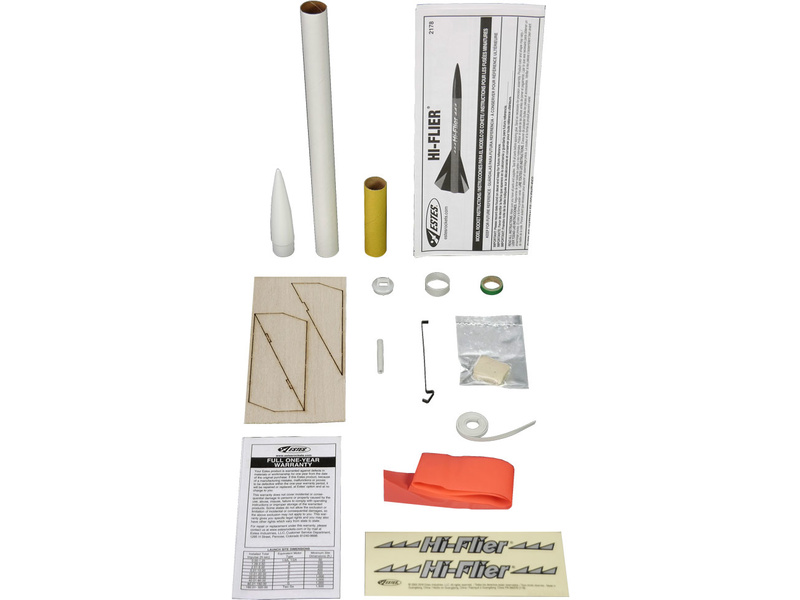 Model rakety Estes - Hi-Flier je na raketové motory řady A - C. Hi-Flier pro návrat používá stužku. Dosahuje výšky až 457 m! Díky oranžové barvě návratové stuhy je při sestupu raketa dobře viditelná.
