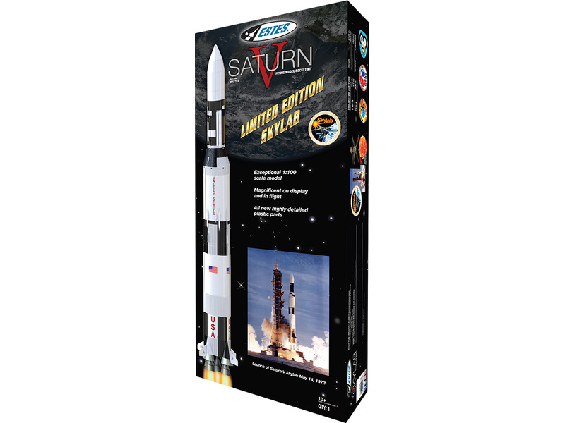 Estes Saturn V Skylab je přesná maketa této legendární rakety v měřítku 1: 100. Vakuově formovaný povrch tubusů a stabilizátorů dodávají povrchu autentický vzhled. Stabilizátory jsou přesné a maketové - k dispozici vodítko pro přesné vyrovnání a přesné umístění. Přiloženy jsou detailní obtisky. Před letem demontujte maketové trysky motorů. Při dosažení maximální výšky se raketa oddělí na dvě části - první a druhý stupeň Saturn V se vracejí společně pod dvěma 24 palcovými padáky, zatímco horní část Skylabu má svůj vlastní 18 palcový padák.